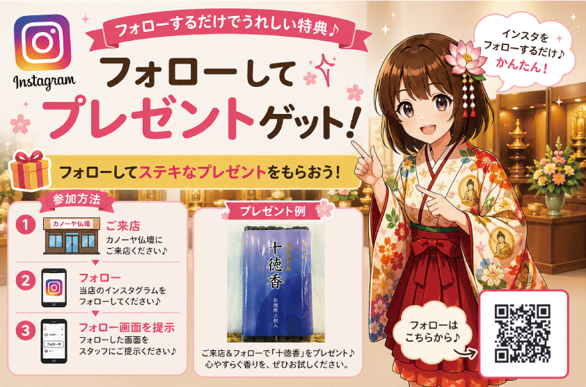 プレゼントをカノーヤ仏壇にご来店してゲットしてくださいね🌸